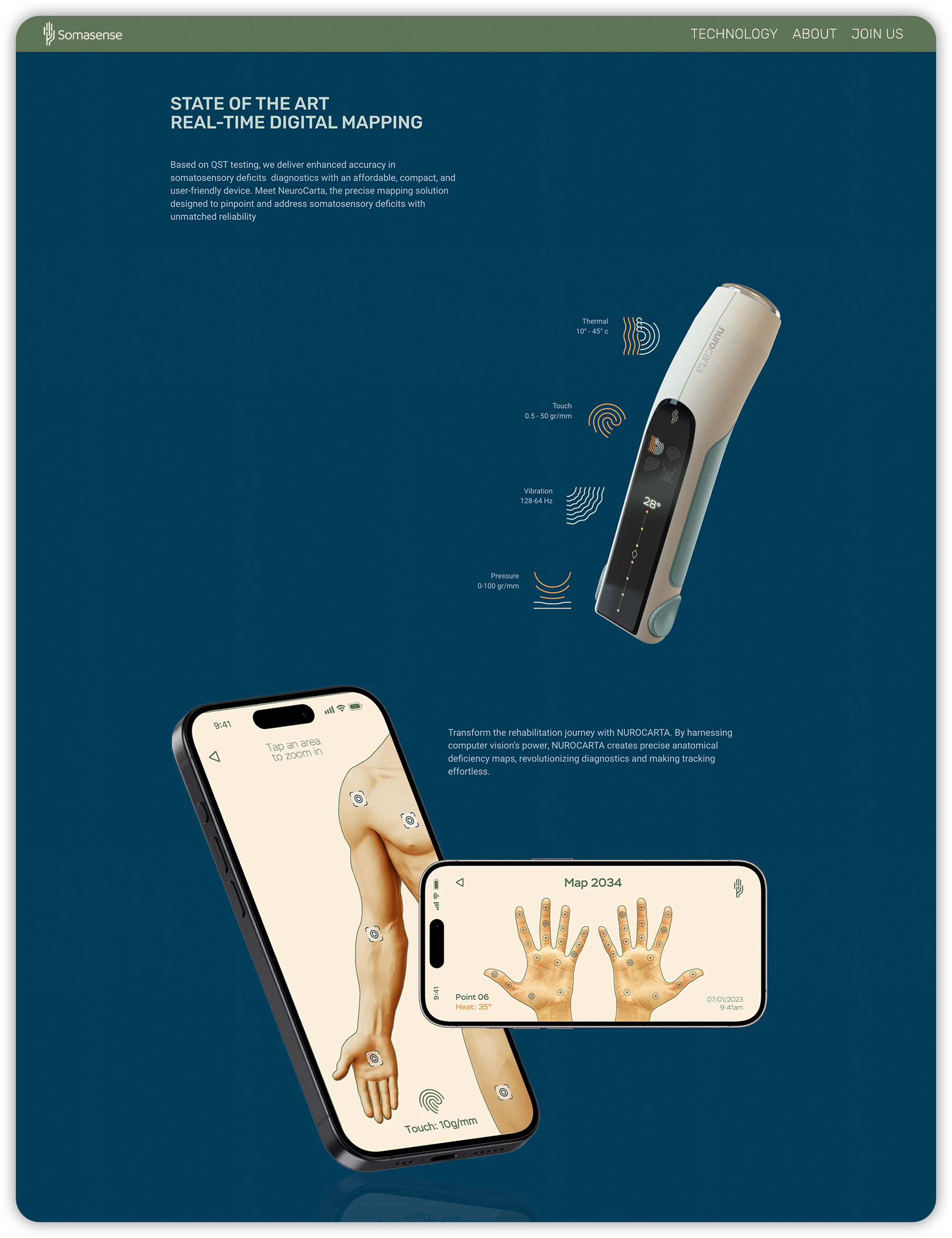 A website demonstrates the capabilities of a somatosensory deficits diagnostic device that is affordable, compact, and user-friendly.